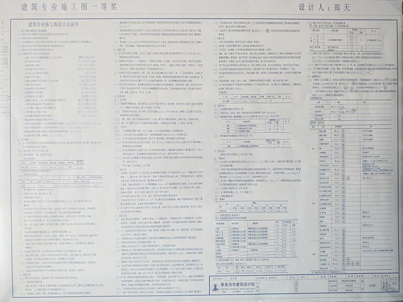 上圖為建筑專業(yè)一等獎獲得者 鄭天參選施工圖