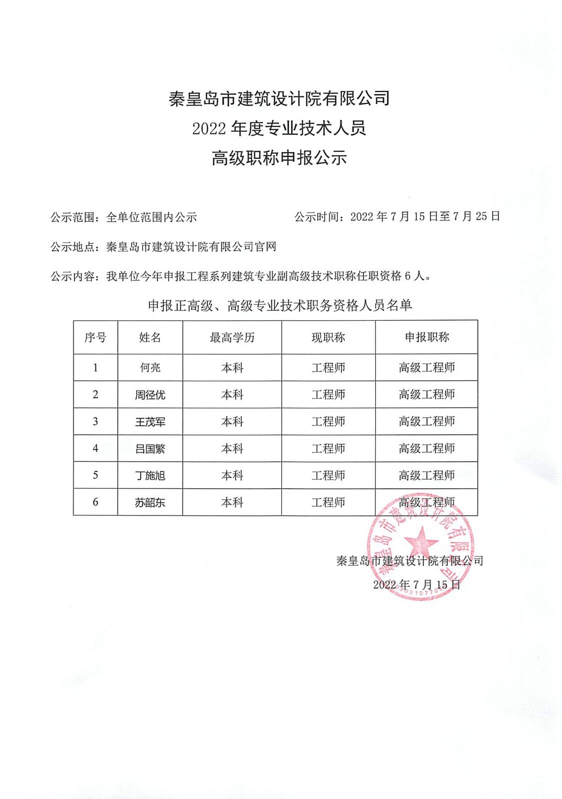 2022高級職稱公示