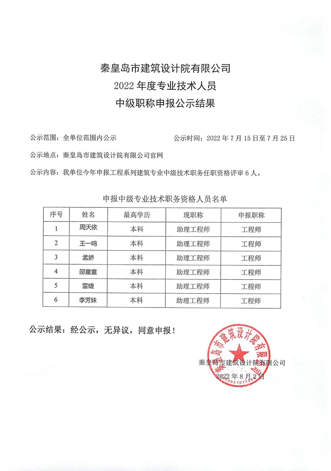 2022職稱公示結(jié)果
